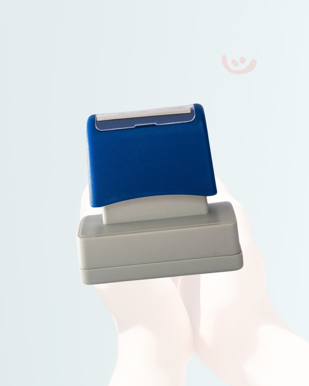 1. Place the stamp upside down on a flat surface (the ink pad should be pointing toward the sky).