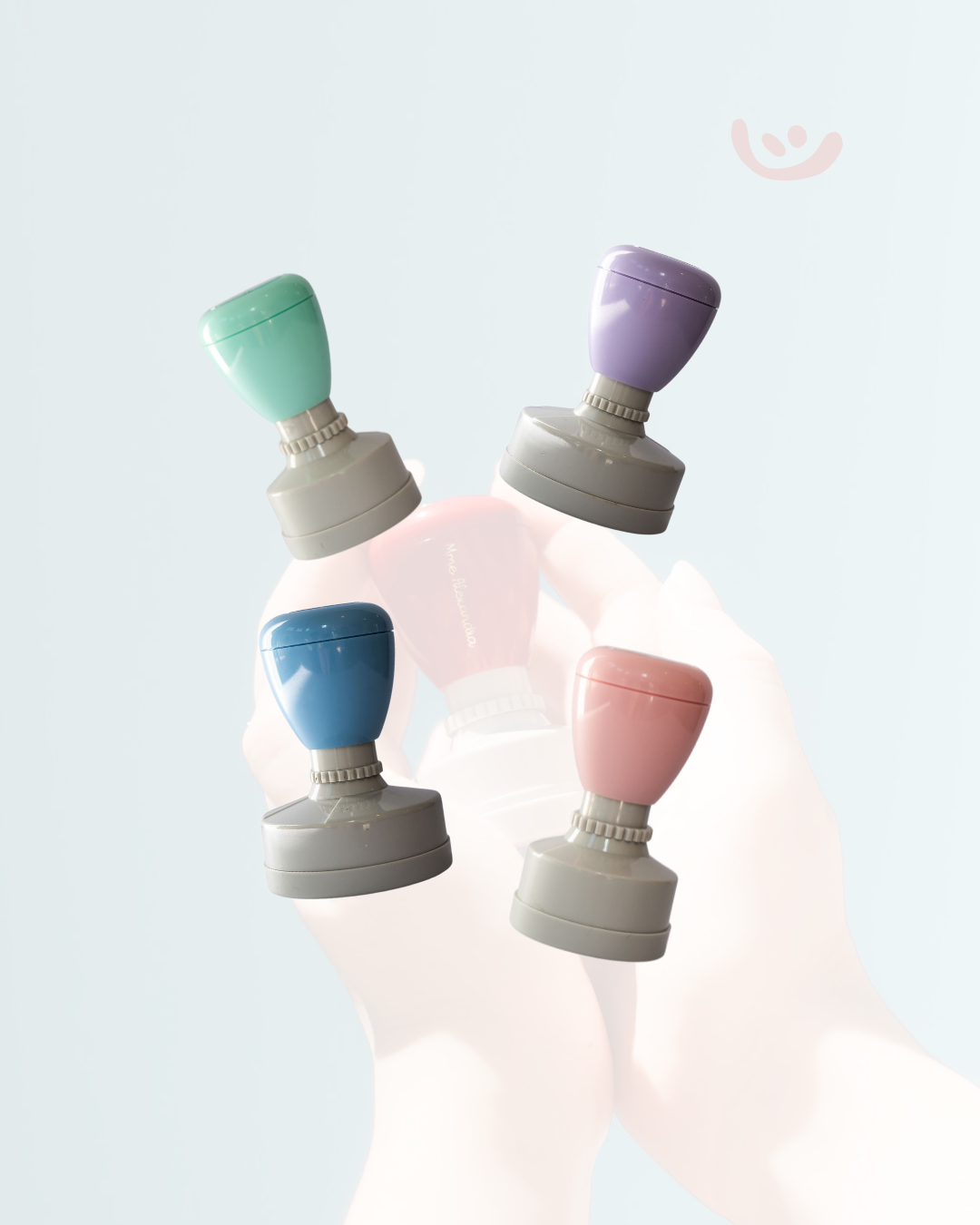 1. Placez l'étampe à l'envers sur une surface plane (le tampon encreur devrait pointer vers le ciel).